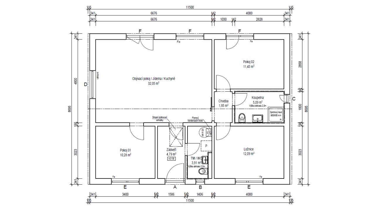 Bungalov Rapido 2-81 v Plzni - Lhotě je postaven v téměř typovém provedení. Oproti standardnímu vytápění tepelným čerpadlem napojeným na teplovodní topení, zvolili klienti plynový kondenzační kotel a radiátory. Nabízí dispozici 4+KK s koupelnou a technickou místností. Z obývacího pokoje a ložnice je možný přístup na terasu, kterou si už klient sám zakryje pergolou.