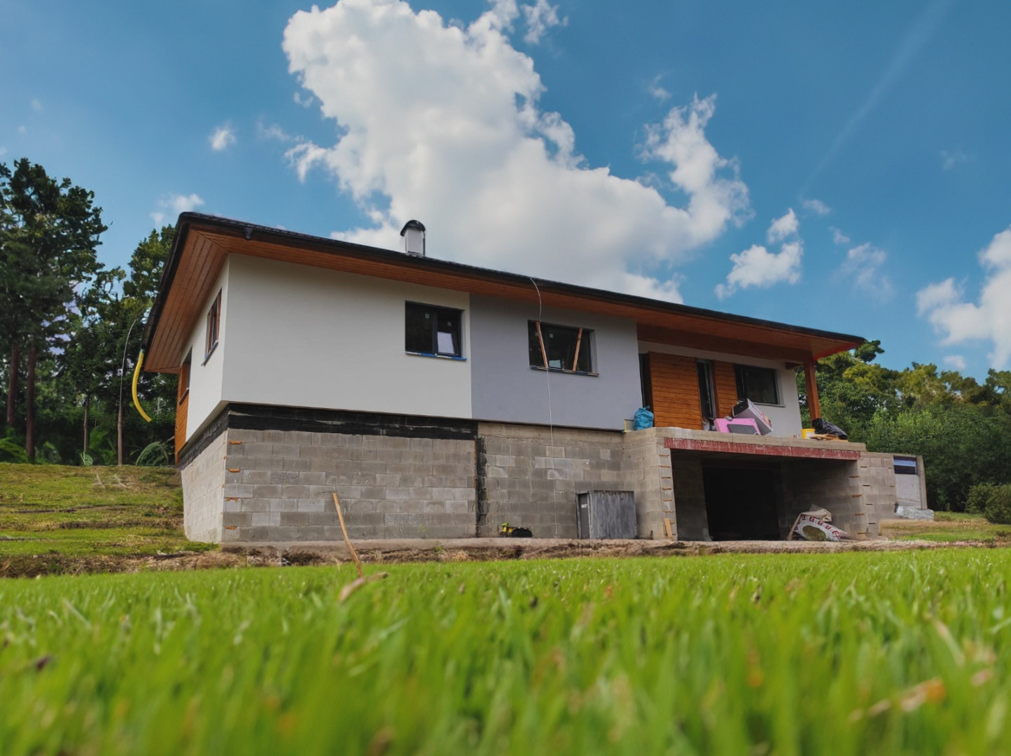 V Choustníkově Hradišti jsme našim klientům postavili individuálně upravený bungalov Instinkt 1-108. Ten patří mezi nejoblíbenější rodinné domy v naší nabídce. A má to své důvody. Užitná plocha přes 108 m2, promyšlená dispozice 5 + KK nebo třeba moderní vzhled. Každý typový dům můžeme jakkoli upravit podle přání majitelů, v tomto případě se naši klienti rozhodli dům podsklepit. Dům je dokončen ve variantě Premium a v době prohlídky bude téměř hotový.
