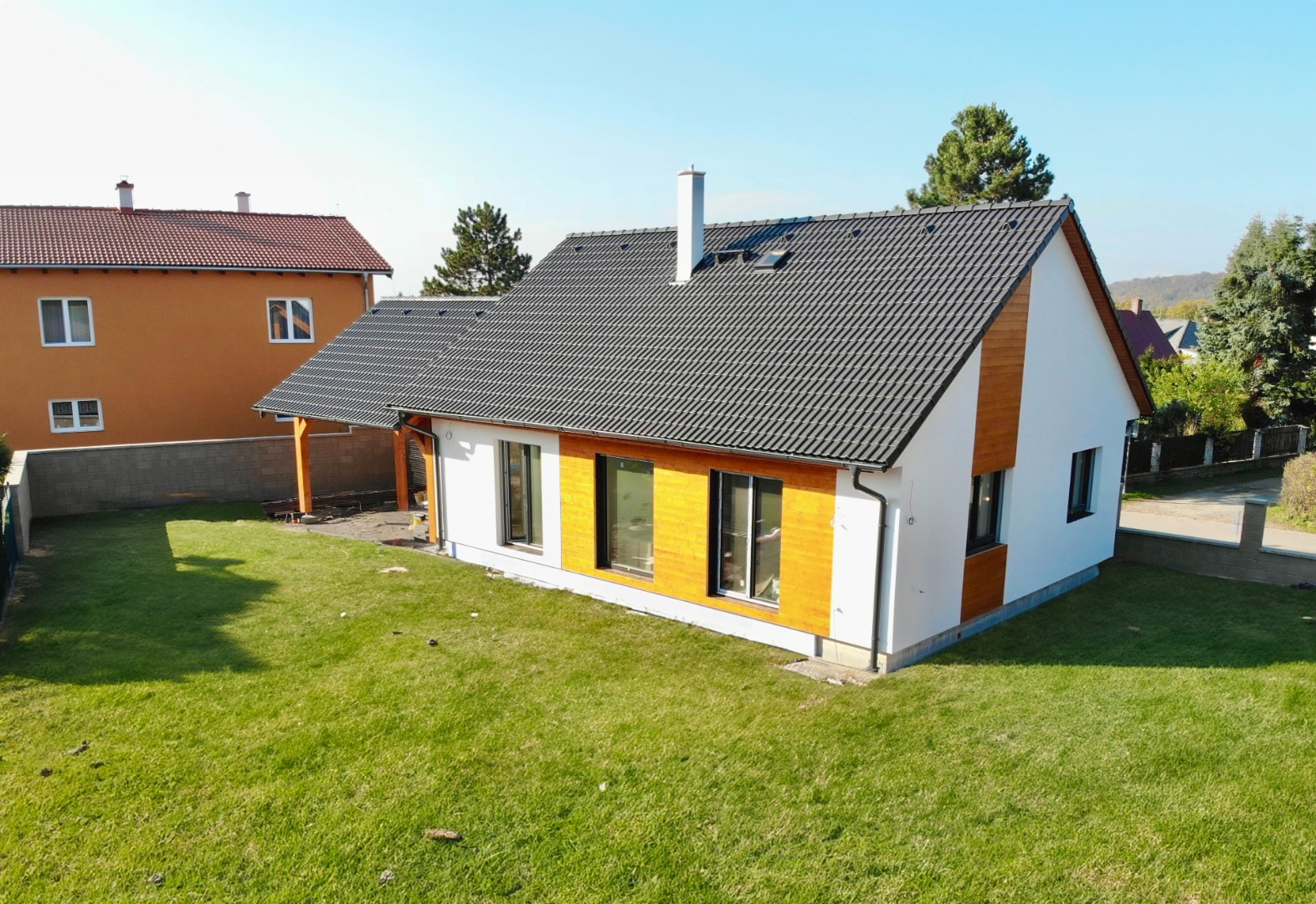 Přijďte si prohlédnout téměř dokončený bungalov Rapido 2-81, přizpůsobený individuálním požadavkům našeho klienta. Tento jedinečný dům je vybaven moderním rekuperačním systémem řízeného větrání Zehnder, tepelným čerpadlem Vaillant, které zajišťuje podlahové vytápění i chlazení, a připraveným komínem pro napojení krbu. Nechybí ani venkovní elektrické stínění na všech oknech, dřevěný přístřešek pro auto a prostorná půda.