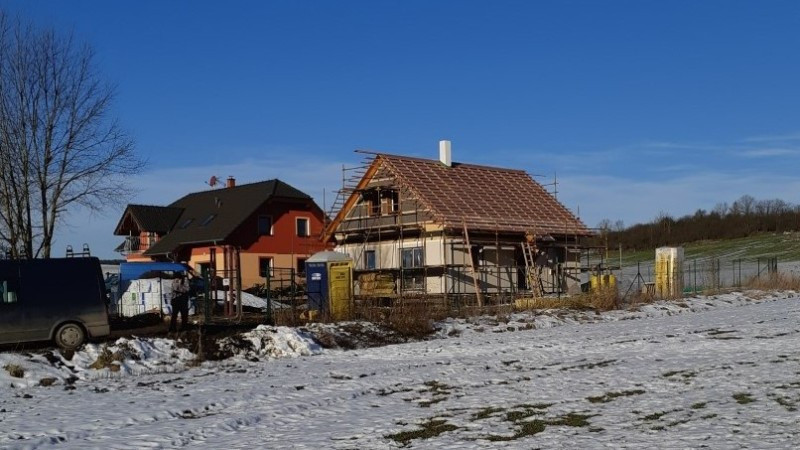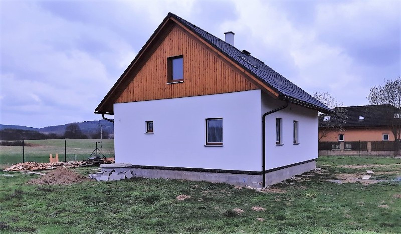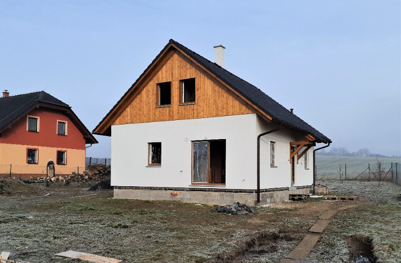 V obci Jablonná, mezi Neveklovem a Slapskou přehradou právě dokončujeme patrový rodinný dům podle projektu Basic Line Torino, který už v současnosti nemáme v nabídce, ale to neznamená, že ho klientům nenabízíme, když mají požadavek na podobný dům. Stavbu jsme zahájili v polovině ledna a na konci dubna předáme hotový dům majitelům.