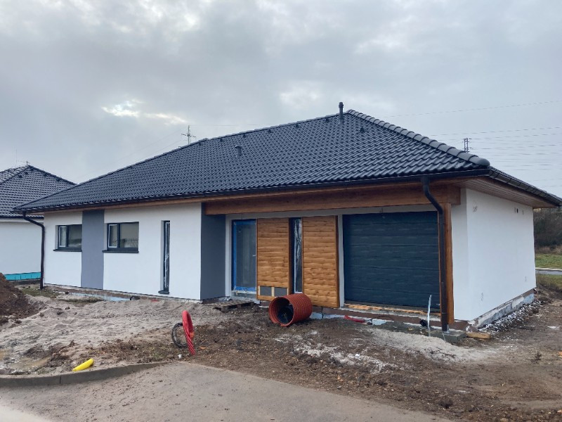 Dům je vytápěn plynovým kotlem napojeným na podlahové topení Rehau a vybavený špičkovou rekuperační jednotkou Zehnder. Prohlédnout si ho můžete těsně před předáním klientům ve stupni dokončení na klíč. Než ale klíče majitelům odevzdáme, budeme muset ještě položit plovoucí podlahy a osadit dveře včetně zárubní.