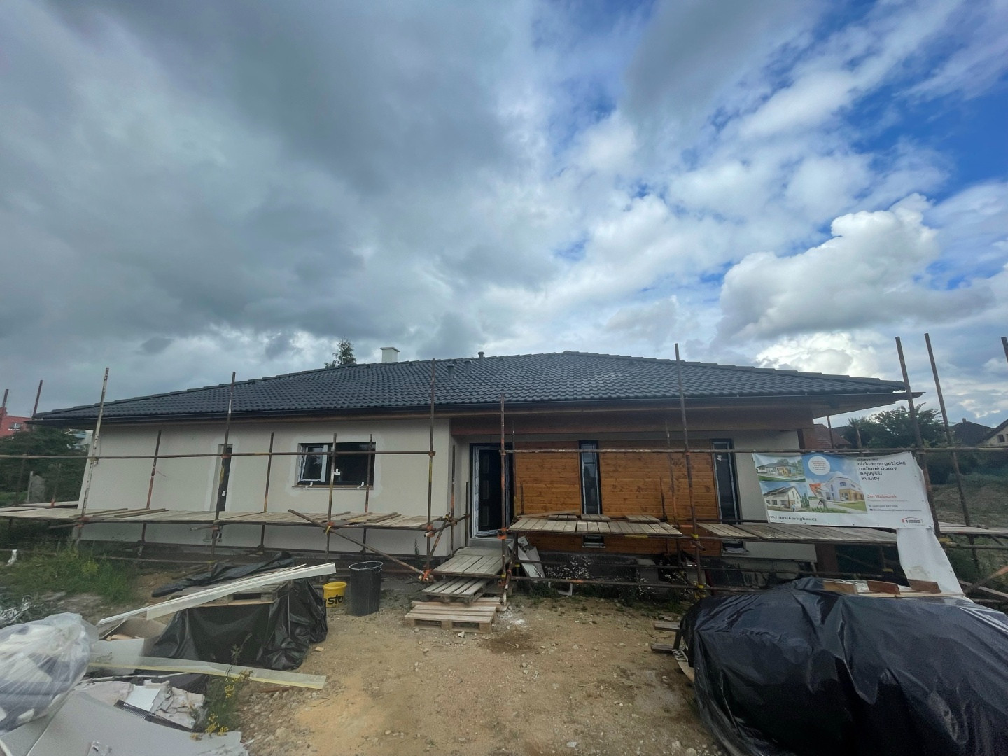 Stavbu rodinného domu na klíč v Blatné jsme zahájili v polovině prázdnin a v polovině října bude dokončen. Přijďte se podívat v sobotu 9. 10. od 10 do 17 hodin, jak stavba vypadá týden před předáním. Než dům předáme budeme muset dodělat ještě podlahy a osadit dveře včetně zárubní.