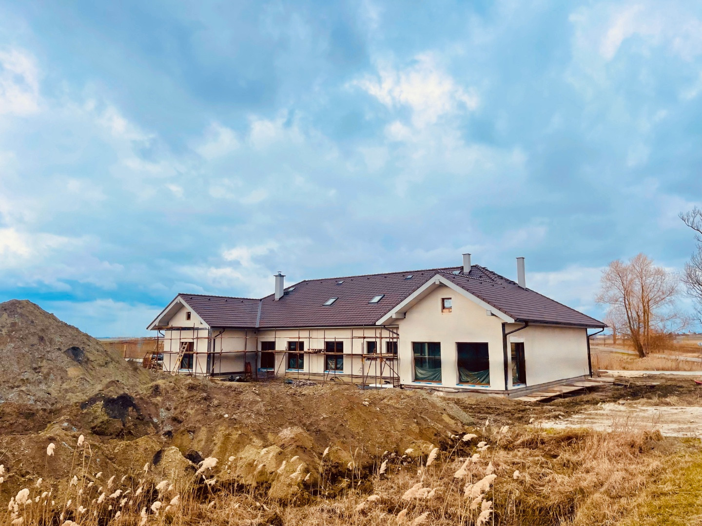 K vidění byl zajímavý bungalov se zastavěnou plochou 427 m2, který vznikl podle individuálního přání klientů. Přesto, že se jedná o moderní dřevostavbu, projekt zohledňuje prvky tradičního venkovského stavení a krásně tak zapadá do lokality. Venkovský styl pak navíc podtrhují klasická kamna na dřevo s plotnou na vaření. V domě jsou připraveny celkem 3 komíny pro napojení právě kamen a také krbu.