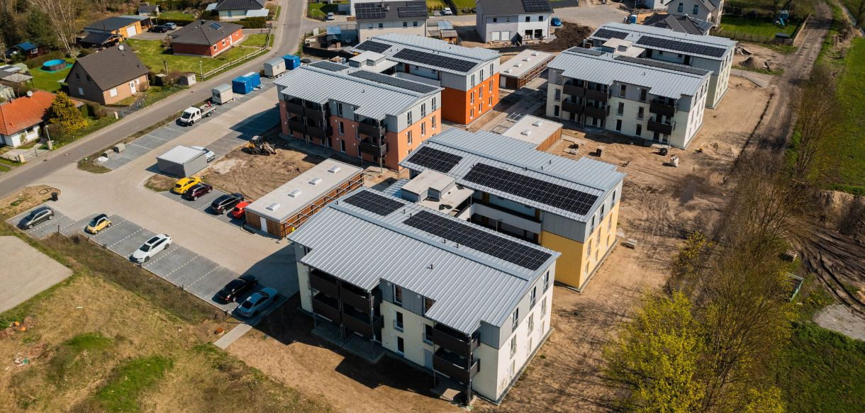 V novém obytném komplexu vyrostlo šest bytových domů, v nichž se nachází 54 dvou- a třípokojových bytů o výměře 54 až 72 m2. Každý z bytů má k dispozici balkon nebo terasu. Dále byly postaveny 4 dvojdomy (tedy 8 rodinných domů), 1 rodinný dům se 2 bytovými jednotkami a dále ještě 5 samostatných rodinných domů.Na stavbu vysoce energeticky úsporných budov byly využity prvotřídní udržitelné prefabrikované dřevěné konstrukce, jež splňují tradičně vysoké nároky a standardy kvality výrobních procesů, materiálů a staveb společnosti Haas Fertigbau. Výsledkem společného snažení všech zúčastněných se stal unikátní bytový komplex nízkoenergetických budov zasazený do idylické lokality, jenž přináší vysokou kvalitu bydlení s maximální občanskou vybaveností i špičkovým vybavením interiérů.Bytový komplex „Zum Glück“ v obci Bötzow nabízí šťastné bydlení, jež svou jedinečnou povahou okouzlí nájemníky, majitele i investory.Unikátní projekt realizovaný společností Haas Fertigbau se tak stal modelovým příkladem, který ukazuje možnou budoucnost trvale udržitelné bytové výstavby (nejen) v berlínském regionu a v Braniborsku.
