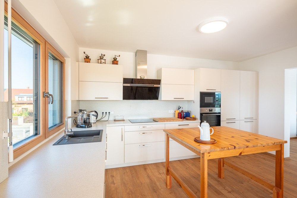 díky maximální prefabrikaci dodáváme hotové panely s okny, parapety a dveřmi, což omezuje riziko průniku vlhkosti na stavbě.