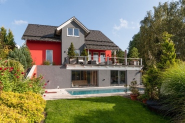 Čas věnovaný výběru vhodné parcely a dodavatele domu se majitelům vyplatil. Dnes si užívají komfort nejen uvnitř, ale díky zajímavému okolí, krásnému výhledu, bazénu a promyšlenému řešení celého pozemku i při pobytu na terase či zahradě.
