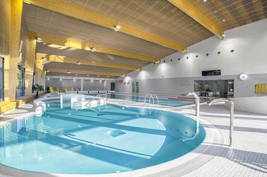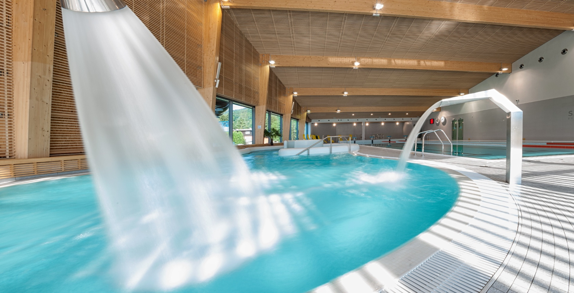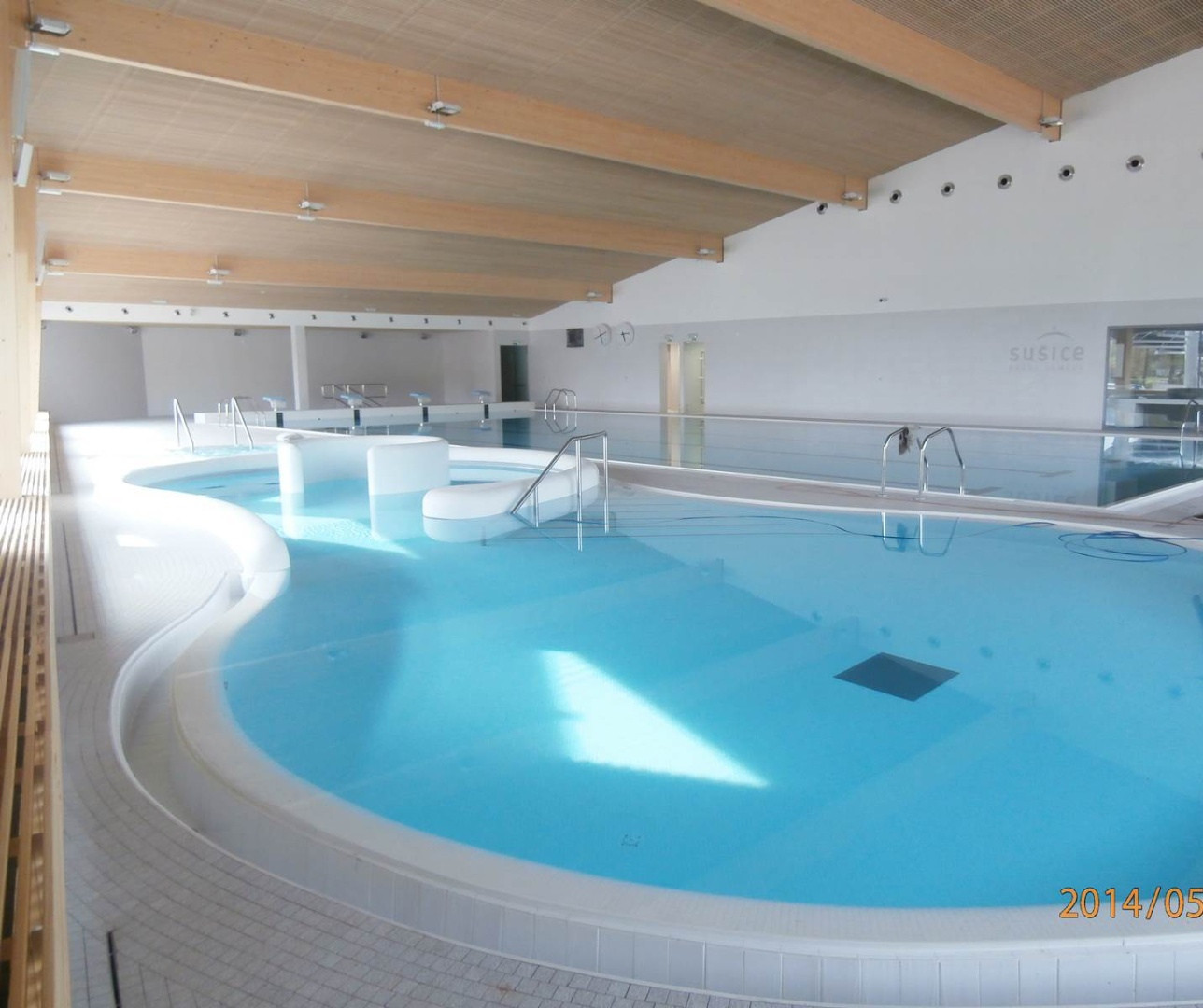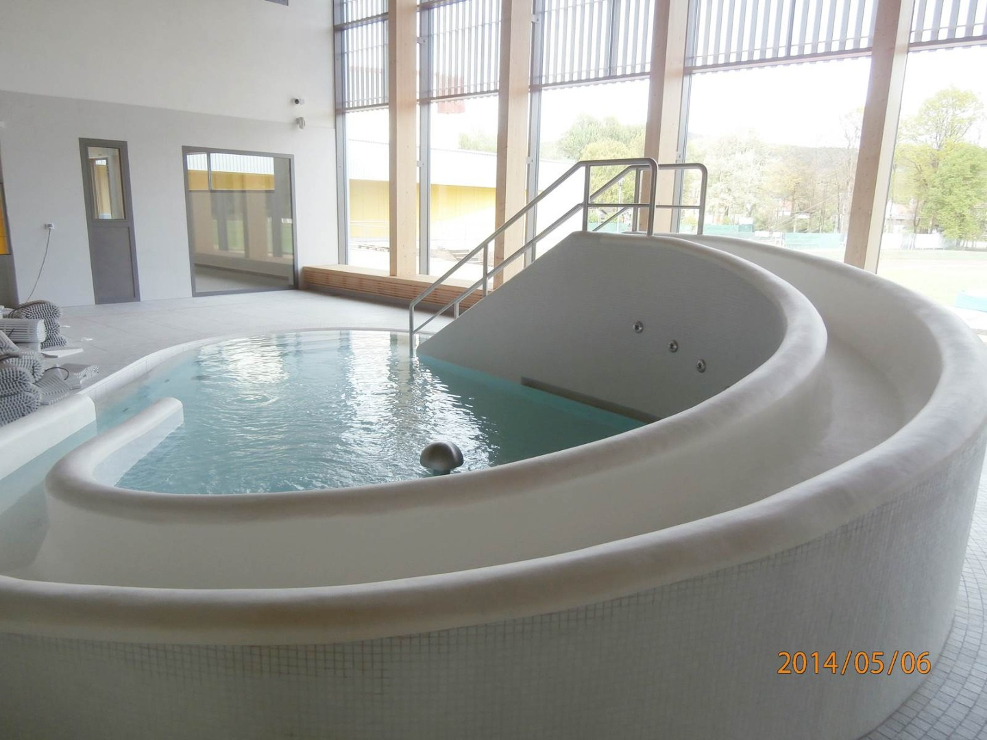 Nové sportoviště je pro veřejnost otevřeno od června 2014. Vedle klasického plaveckého bazénu se čtyřmi pětadvacetimetrovými dráhami v prostorné a vzdušné hale ze světlého dřeva najdou malí i velcí sportovci také samostatný zábavný bazén s masážními tryskami a divokou vodou, dvě vířivé vany, uzavřený tobogán se světelnými efekty a dojezdovým bazénem či dětské brouzdaliště. Unikátní je technologie protiproudu v plaveckém bazénu pro simulaci divoké vody.